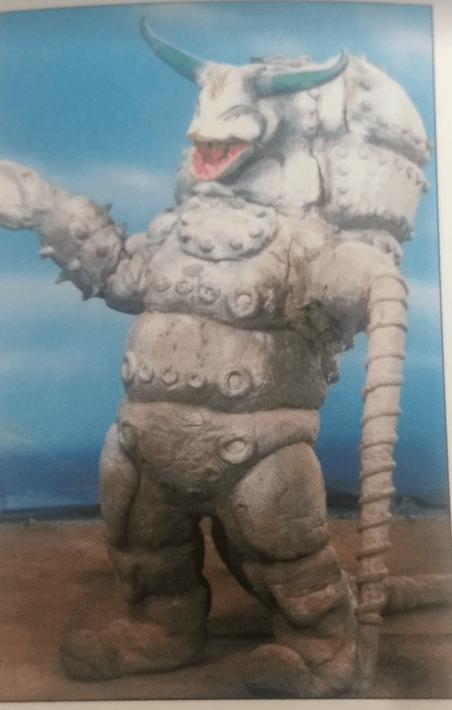 King Tedgon’s odd name is the result of an accident during the episode’s notice. Originally named King Deadgon, a typo in the episode’s notice rendered this guy’s name as Tedgon, with some books even taking further and calling him King Tetgon! Poor guy, though I do love how in the greater tokusatsu monster canon there is a guy who has Ted in his name.