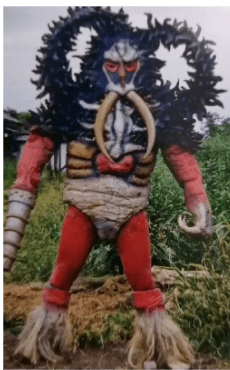 The design by Yonetani is another winner and while not as elaborate as Satangone, the design itself feels very fitting for the show’s final monster. I am a big fan of the striped patterns on the chest, which reminds me of both of zebras, as well as Dada, as well as the satyr-like legs they have which helps continue the demon theme well. The horns on Demongone’s male form were made smaller after how difficult it was to work with Satangone’s larger and unwieldy horns, and were inspired by cow horns. Each form’s unique face was accomplished by having switchable masks, thus saving time and money by creating a whole costume for each form. The large eye in Demongone’s stomach had an eyelid mechanism, something that was not possible at the time of Mirrorman, and almost feels like a throwback to Yonetani’s design for Big Eye back in that show, almost as a little tribute to that eyeball beastie from Mirrorman.