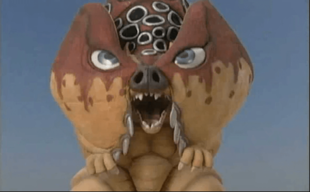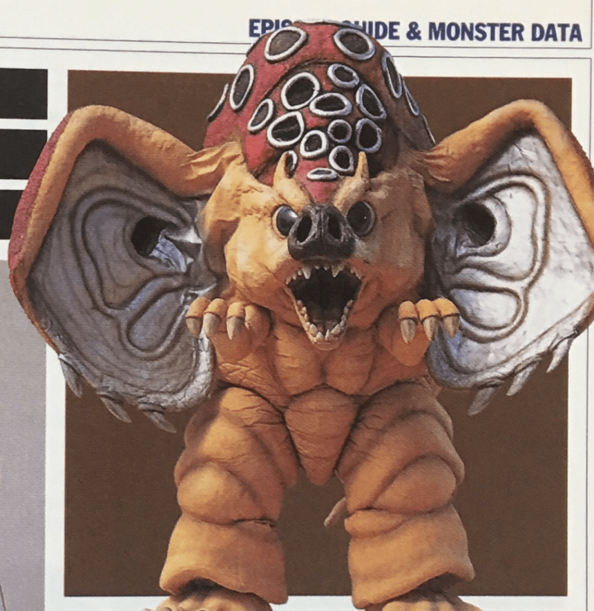 The last monster we’ll be looking at is Tabu Zagon, who is probably my favorite of these guys. A pig inspired kaiju with huge ears already makes for a really fun kaiju, but what really makes him cool is the character’s alternate face: