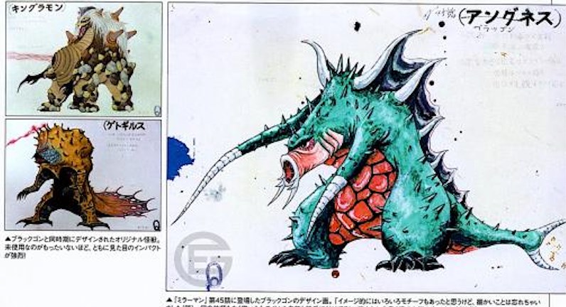 Kurei also came up with two alternate designs for Blackgon, seen on the left there. Both of them are interesting designs, and Kurei has stated to be disappointed that neither got used at all during the show. Since both of those designs have different names than Blackgon (King Ramon for the top one and Getgills for the bottom) it’s a shame neither one got used as new characters in this show or any other ones.