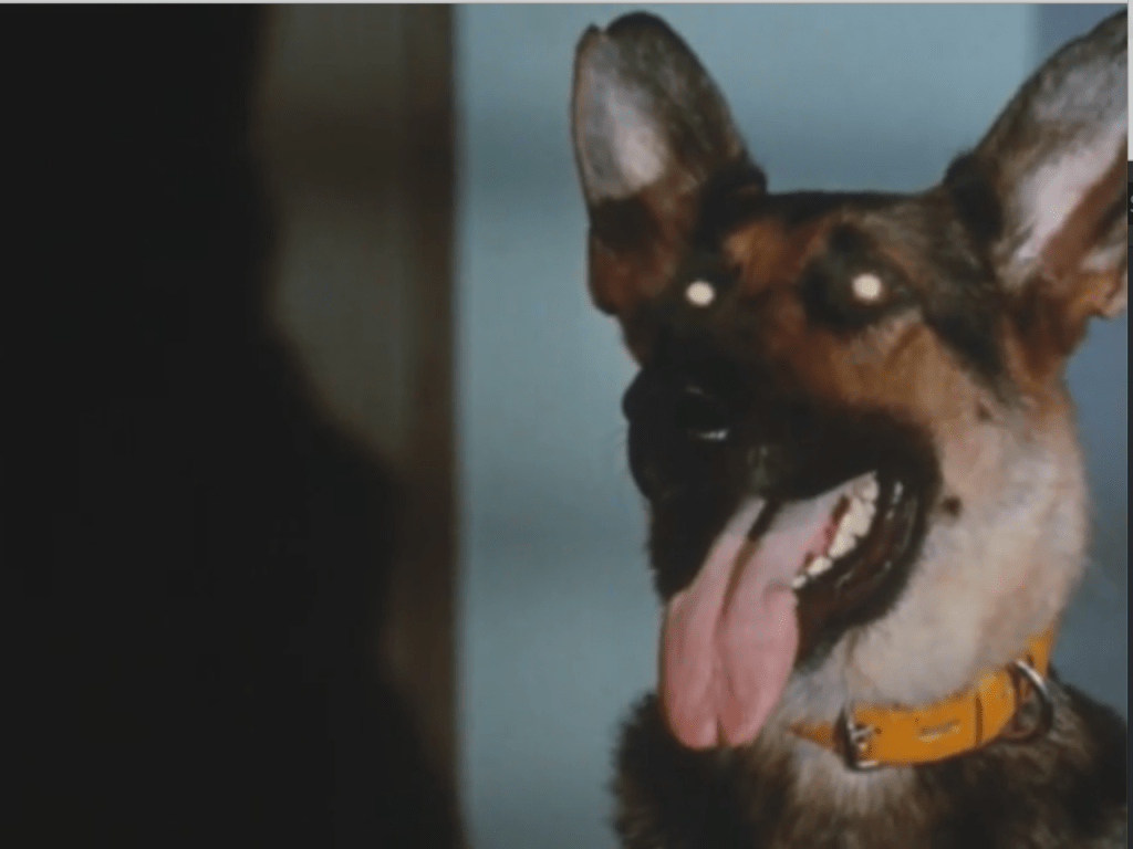 The boy is always seen with a German Shepherd, really the disguised form of Invesaurus. The dog transforms after the kid has a change of heart and helps Kyotaro escape.