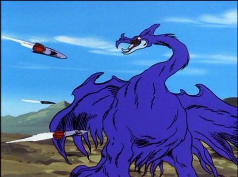 The Jadan’s plan features two of their members transforming into the monster Jagon. Their plan here is actually quite effective, having Jagon attack Osaka, while their mothership attacks Tokyo, fully intending to exhaust Jonias, and they almost succeed until some of Jonias’s comrades from U40 help even the odds.