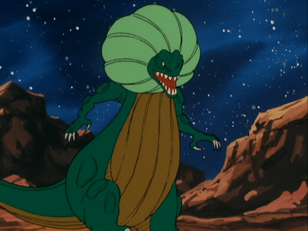 With a name like Deathpower, you’d expect this hulking lizard kaiju to be a bigger deal in this episode, but he’s mainly here to mug for the camera. A shame he’s wasted.