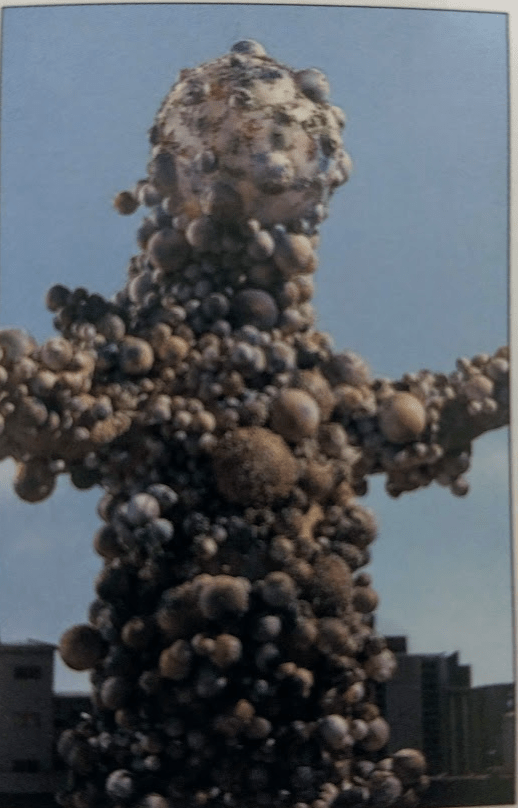 Naturally of course, the Okorin Balls coalesce into a larger humanoid form at the episode’s end, with the larger leader ball forming the monster’s head. I can’t think of any tactical advantage these guys would have by becoming one bigger dude, but such is the life of these sorts of monsters. Snark aside, the larger Okorin Ball is a wonderful monster, looking eye-catchingly grotesque design with that lumpy body texture. The director for this episode, Sanmaji Nonagase reportedly wasn’t too pleased with how Okorin Ball’s giant form had no eyes, but personally, I feel like it helps with how bizarre and inhuman these things are, and the lack of recognizable anatomy works for a skyscraper sized combination of blood-sucking space parasites.