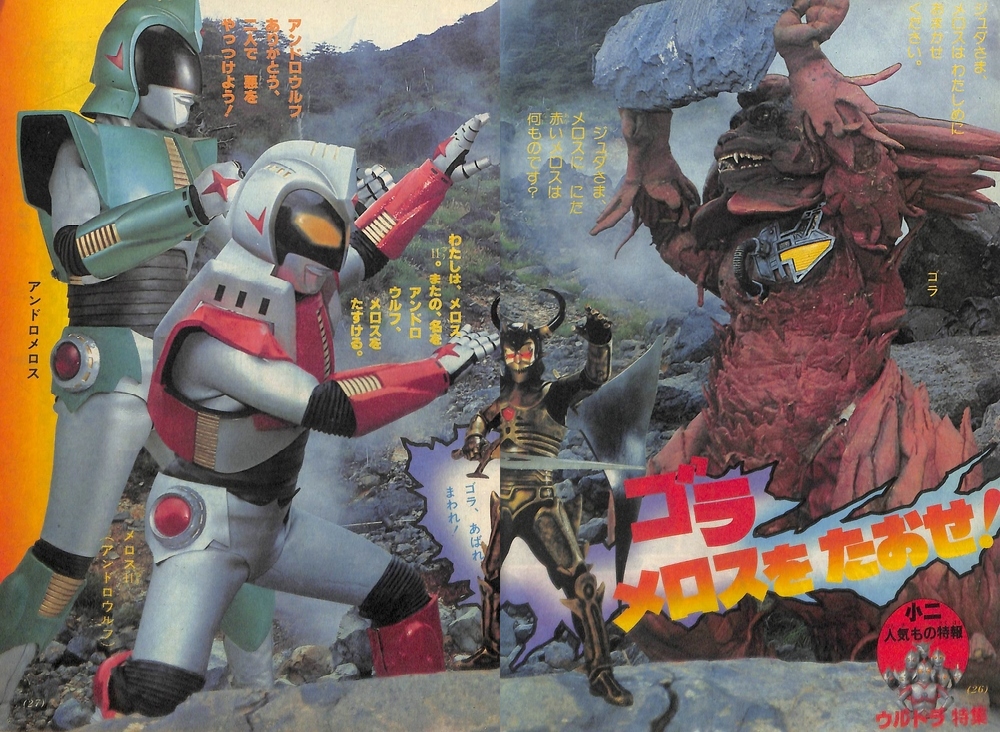 Going back to Gora, the monster would have a somewhat bizarre afterlife. While he never appeared in the show proper, Gora would appear in the Televi-Kun magazine’s Andro Melos photo stories, having been cybernetically enhanced by the Guar Army to battle the Andro Warriors. Gora would later appear as one of the man Ultra Monsters in a special episode of comedian Takeshi Kitano’s obstacle course gameshow, Takeshi’s Castle, better known to Western fans as MXC. Lastly, stock footage of Gora’s battle with Ultraman 80 would pop up in, oddly enough, an American commercial for Google’s line of Chromebook computers.