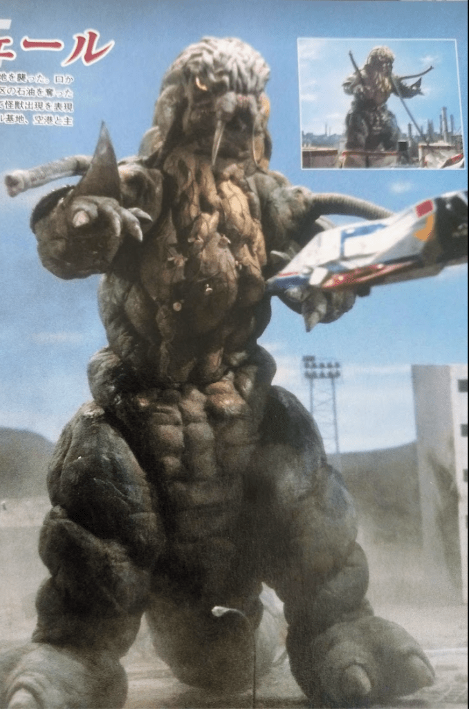 Hoe would become one of the privileged few kaiju to escape from 80, appearing with some frequency through the Heisei era. While not clocking in as many roles as guys like Bemstar or Velokron, Hoe’s got quite a few under his belt and is the closest thing to an iconic monster for 80. Hoe’s most notable role however, is in 2006’s Ultraman Mebius, which featured Takeshi Yamato reuniting with his former students at their old school. A fitting return for the monster and the show’s original premise.