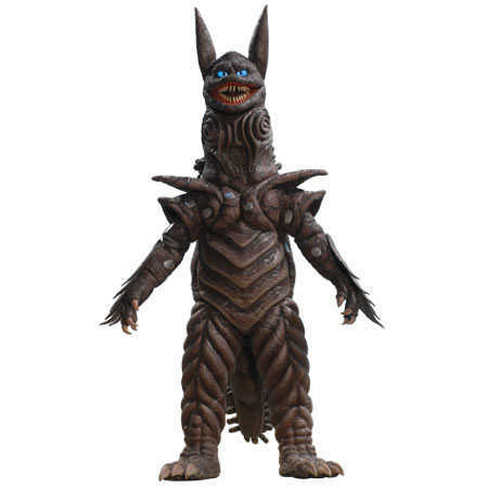 Born from Minus Energy, Crescent is the first monster to appear on Earth since the Saucer Beasts from Ultraman Leo. Crescent here isn’t a bad monster to start us off with, being your average big dinosaur an Ultra tends to wrestle in their first adventure. He’s simple, but hits the marks of a quality design thanks to his dark, craggy scales, as well as the three fangs protruding from his mouth! Crescent’s main inspiration was the Asian Black Bear, which is reflected on his white, crescent marking on his body.