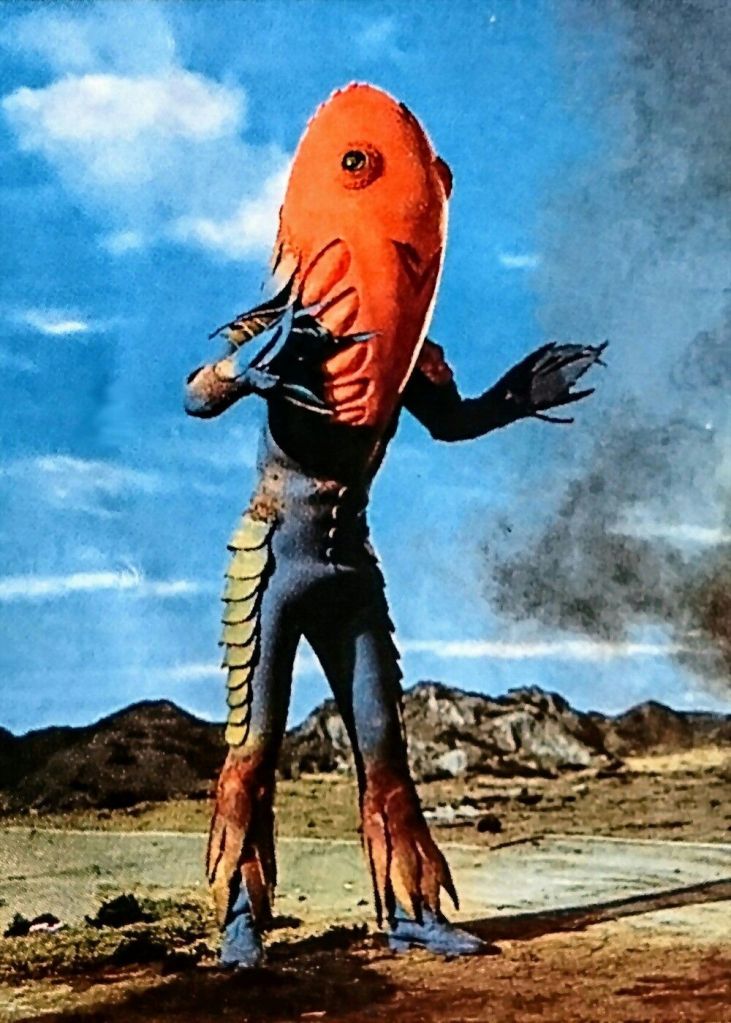 1972’s Ultraman Ace would bring a wave of new changes to the series upon its debut. Influenced by other tokusatsu shows at the time such as Kamen Rider, Ultraman Ace would drive the series into the territory of full-on superhero fantasy, bringing new concepts such as two hosts for the title character, and feature for the first time in Ultra, an overarching main villain responsible for the monsters seen here. The monsters themselves, known as Chojuh, or Terrible Monsters, are all synthetic creations, said to be much more powerful than the previous kaiju seen, and often times, are much stranger compared to the monsters from the last four shows.