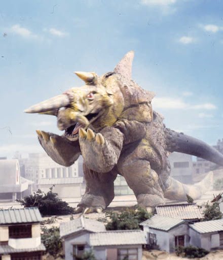 Velokron is a strong monster to start the show off on, and rightfully one of the most iconic creatures from this show. It’s a nice design that happens to feel both simplistic, and exotic. As you could probably guess, I really like the red growths around his body, which make for a neat design. Iguchi was said to have based this monster’s design off of the idea that the Yapool combined coral and a space monster into one organism, and I think he did a great job conceptualizing it. Another thing that isn’t apparent at a first glance, is that Velokron is basically a living missile launcher, and is basically entirely mechanical on the inside. It’s not much, but it really helps convey the idea that Velokron is more than just a simple monster, this is a Terrible Monster we’re talking about!
