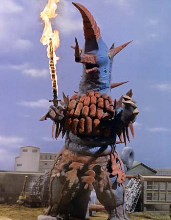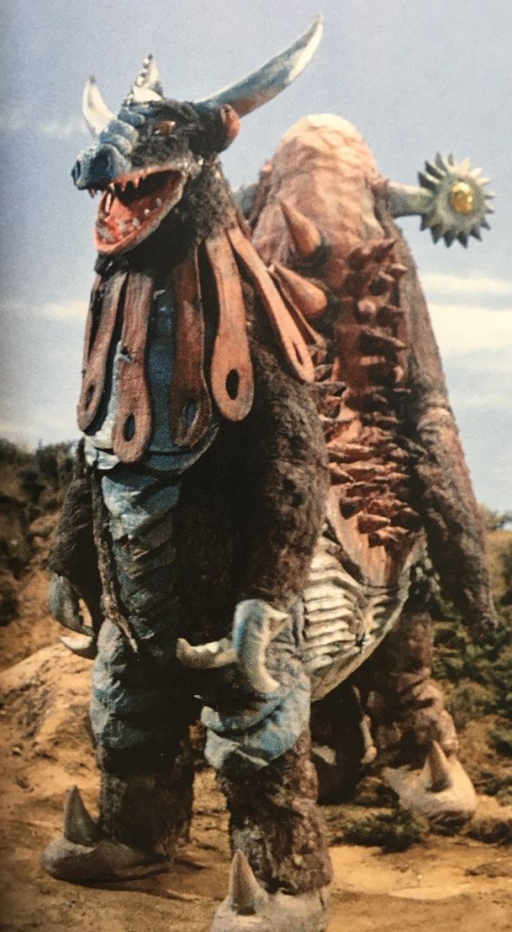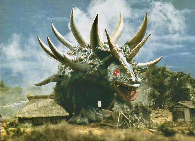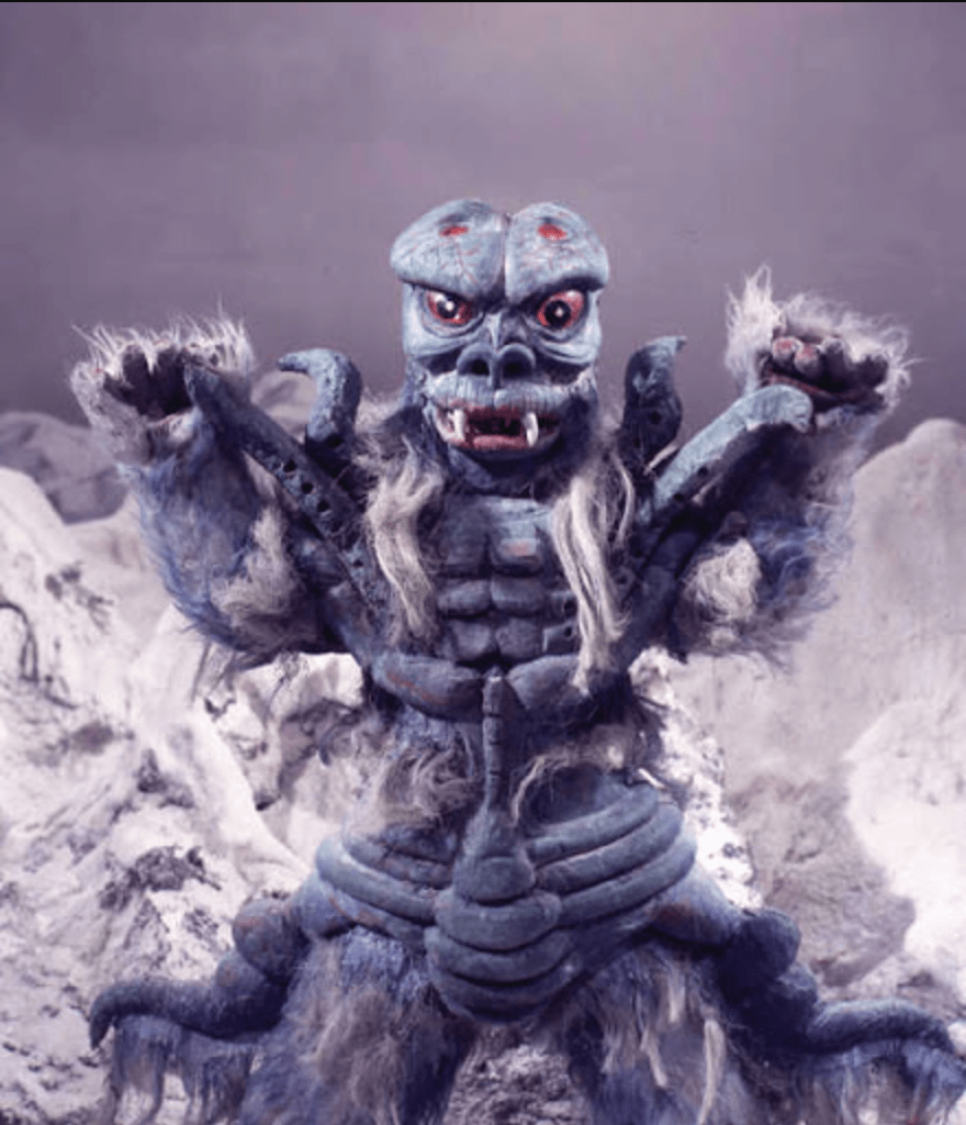 The show’s third ice and snow themed monster, Fubugirara is a chojuh from the third planet of the constellation Leo summoned to Earth by a hermit angry at a ski resort. Fubugirara soon creates a massive blizzard, intent on turning Earth into a frozen wasteland like his homeworld.