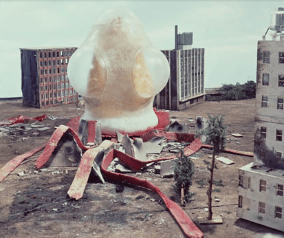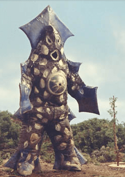 The second Saucer Beast to attack, Black Dome’s arrival on Earth is spotted by Tooru and his friends who mistake the creature for an interplanetary craft. Trying to get the attention of the UFO, they accidentally summon Black Dome into the city, who begins wreaking havoc with his acid foam.