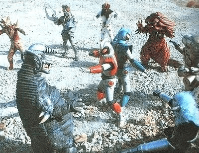 Not all of the beings seen in Andro Melos are evil however, as there’s Elpa, a friendly ape-like alien who is a friend to Andro Wolf, helping out the team in order to liberate his home planet from the Guar Army. He’s definitely an odd duck as far as aliens come, but very fitting to such an odd and cheap installment of the franchise, feeling more in line with Tsuburaya’s 1974 Planet of the Apes inspired tokusatsu Army of Apes, or perhaps even the 1980 Rankin-Bass film The Ivory Ape which featured many Tsuburaya personnel working on it. Poor Elpa dies at the hands of the Guar Army (the villains turn him into a monster in the magazine version, but I haven’t been able to find a picture of this iteration) though with how cheap the suit is, he’d be easy to bring back into the series put him in Ultra Galaxy Fight 3 you cowards .