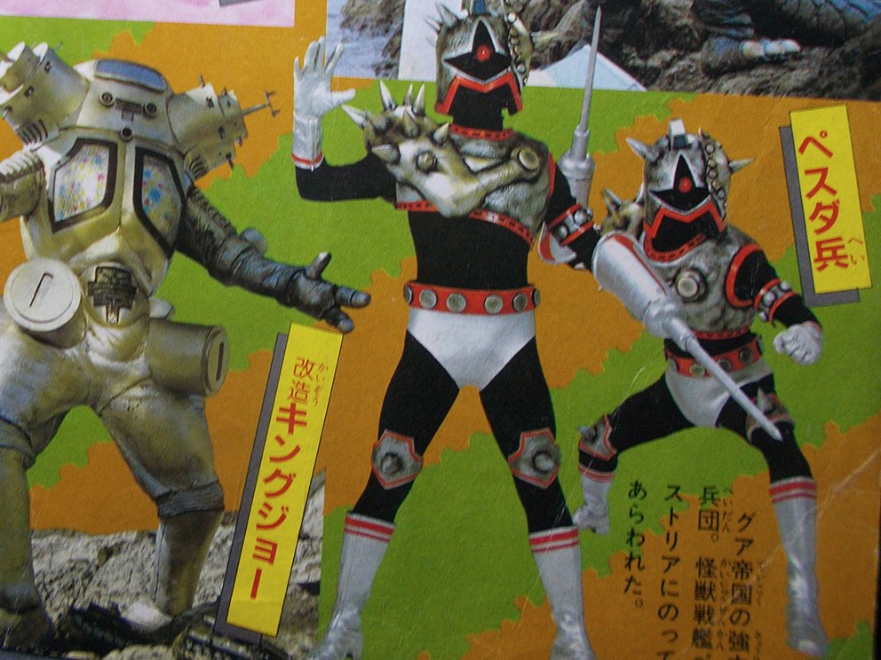 Before we look at the kaiju of the Guar Army, let’s look at some of their minions! Early on we get to see the return of the Magma from Ultraman Leo. Love how the leader has half of his face be cybernetic! These guys were a trio who trained themselves to be powerful warriors in hopes of someday conquering the universe, which gets them involved with working alongside the Guar Empire.