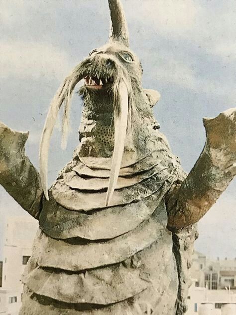 A vampiric plant possessed by the ghost of a child, Basara is one of the eerier monsters seen here in Taro. Basara really feels like something from a Japanese ghost story, and the spooky nighttime photography and it’s cries, those of an infant, really help Basara earn a spot as one of the spookier Showa kaiju. I also really like how they made an otherwise ghostly and supernatural creature a plant-based on, which really helps Basara feel more unique than if they were just a run of the mill ghost.