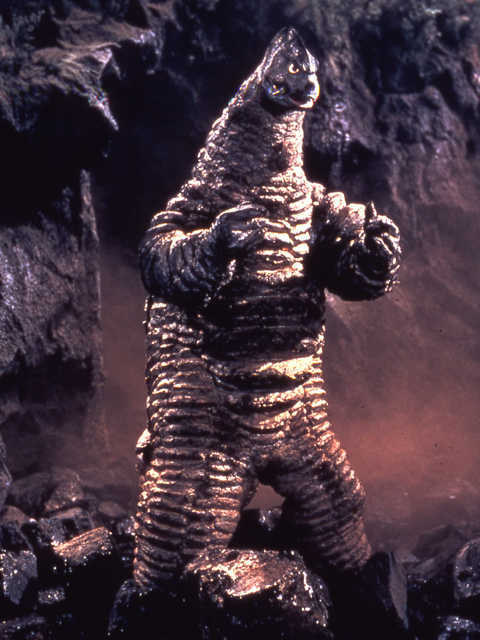 Guesra, much like Neronga preceding him, is another monster that eats resources. But rather than snacking on precious metals, oil or the like, Guesra instead feeds on cacao beans. Guesra is a naturally occurring species of lizard native to South America and while that normally wouldn’t be too big of a deal, one stows away on a boat headed to Japan, and upon falling into Tokyo Bay’s polluted waters, mutates into a gigantic size much like you’d expect. It’s kind of a wacky, semi-convoluted origin story for a big sea monster, but that’s what I like about kaiju: Their origins are stupidly specific if they have one.