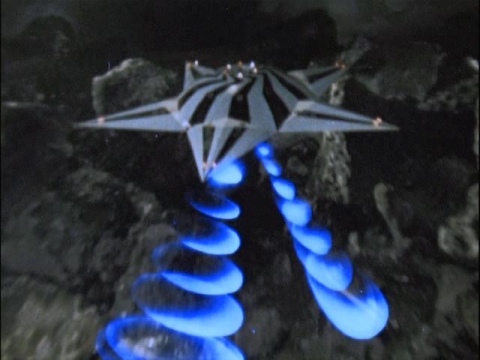 We don’t learn much as to the regards to the Mimy aliens, let alone what they look like, but I do dig their star-shaped UFO with those black stripes, it’s a sick as hell ship.